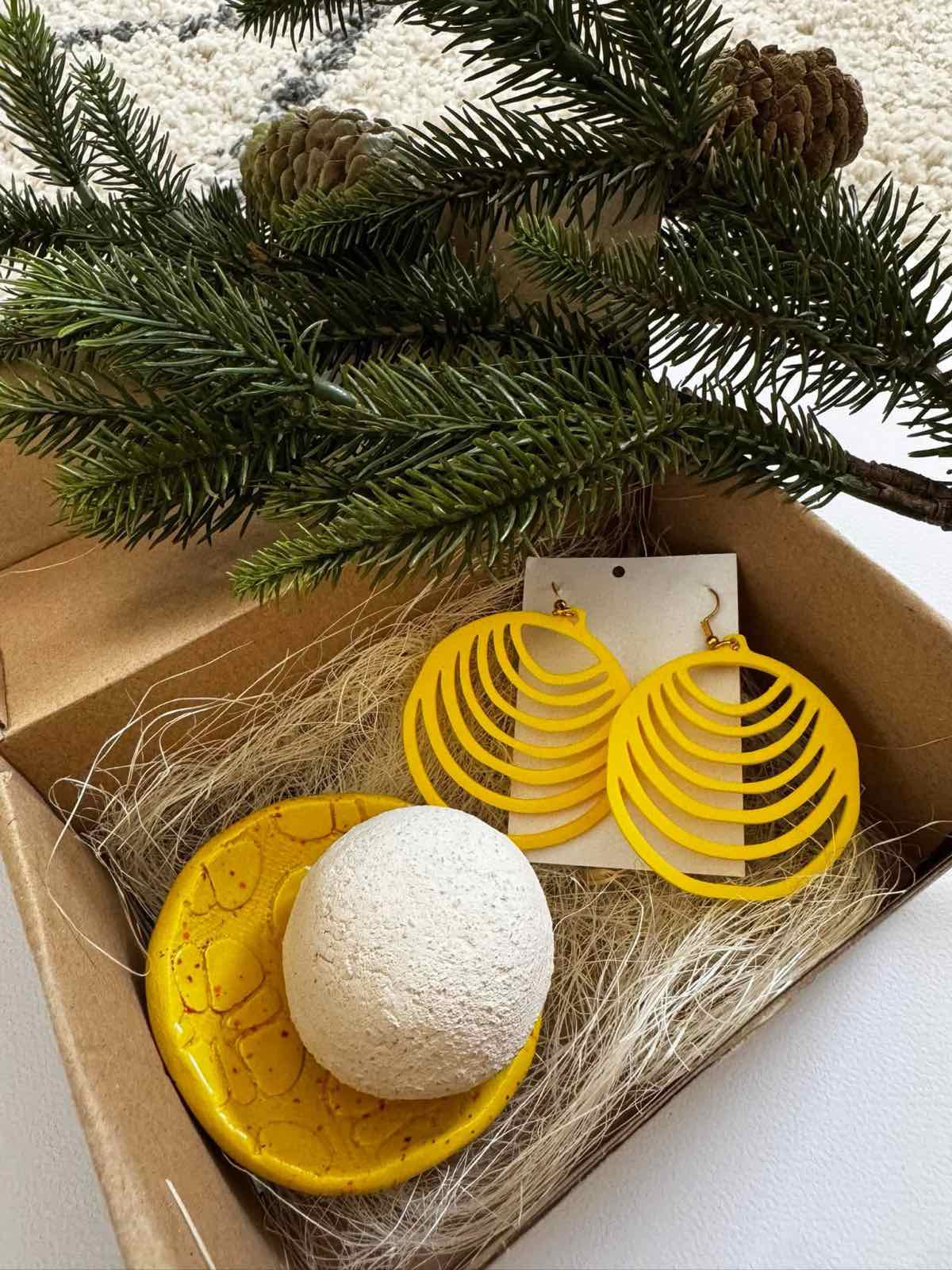 Kompletek mini dišeči kamen + lesena šnitka Merry Christmas