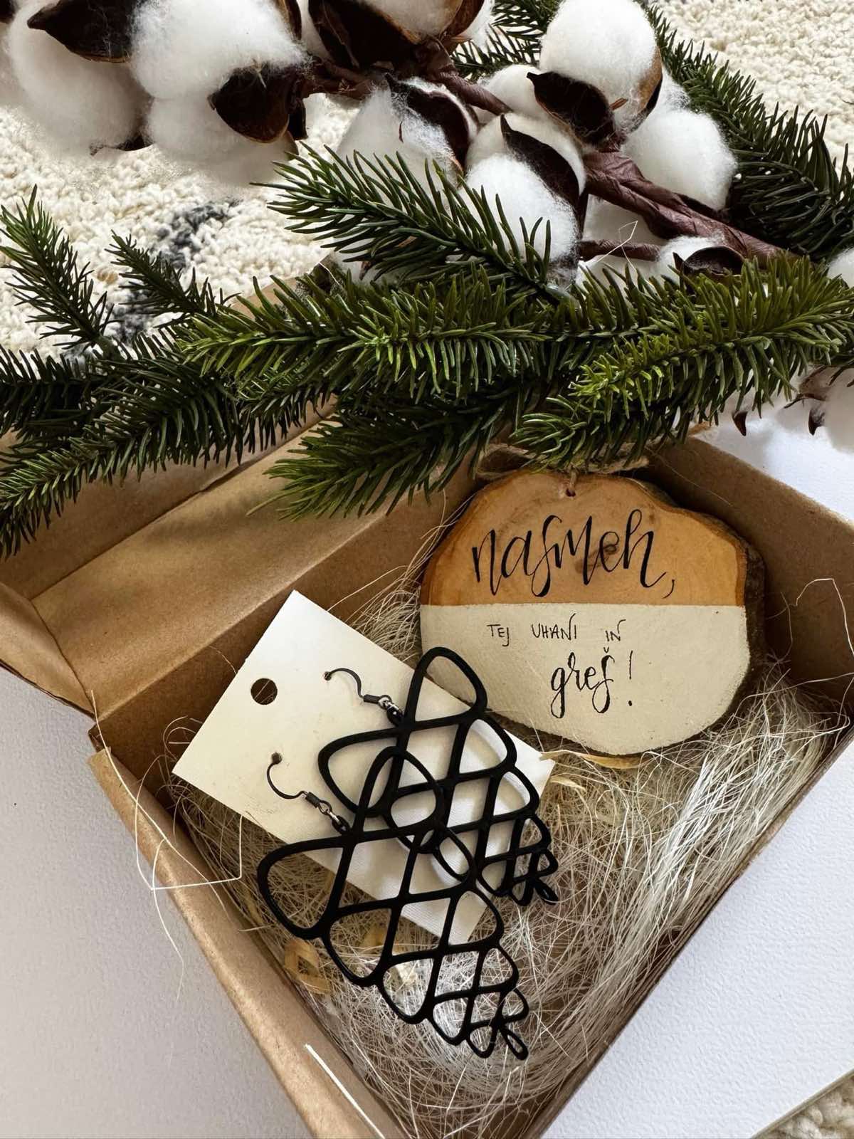 Lesena šnitka + uhani